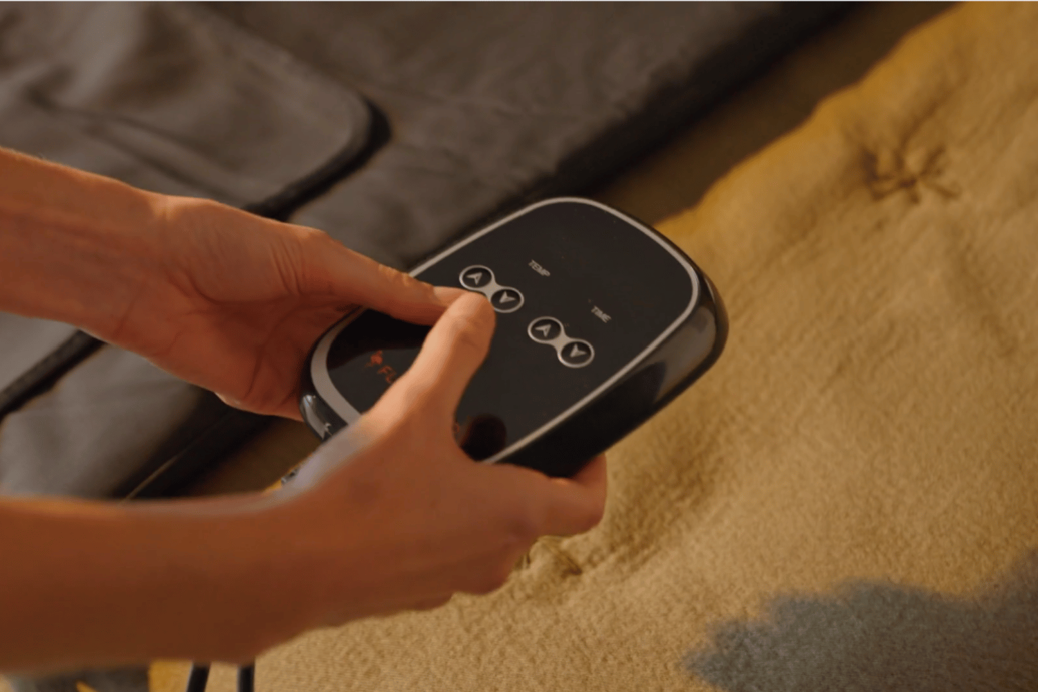 Leg de deken op een comfortabele plek zoals een bed, bank of yogamat. Plug in en stel de gewenste temperatuur en tijd in via de handzender. Je kunt alvast heerlijk in je deken kruipen. Zodra jij op de startknop drukt begint de deken direct met het opwarmen.