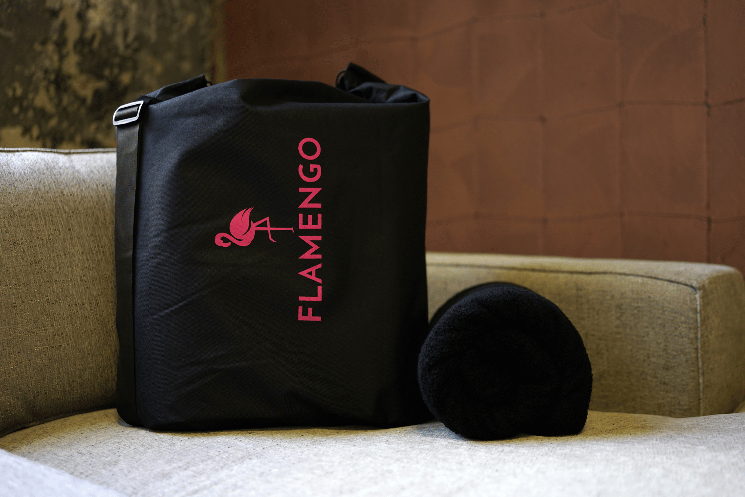 Treffen Sie den '' Einfügen Tawel ''. Ein schwarzes Handtuch, das speziell für Ihre Flamengo -Sauna -Decke ausgelegt ist.